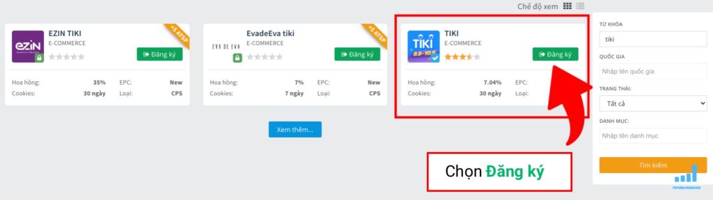 Ấn Đăng ký chương trình tiếp thị Liên kết của Tiki