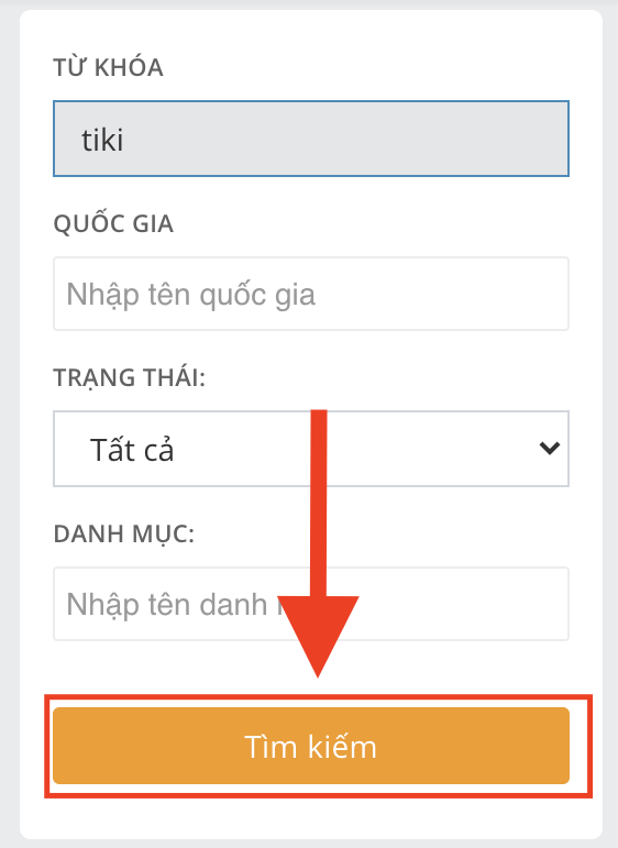 Sau khi nhập từ khoá “Tiki”, các bạn ấn nút Tìm Kiếm: