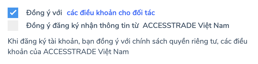 Sau khi nhập các thông tin trên, các bạn chọn Đồng ý các điều khoản, nếu các bạn muốn nhanh chóng nhận được các bản tin chiến dịch từ Tiki của AccessTrade