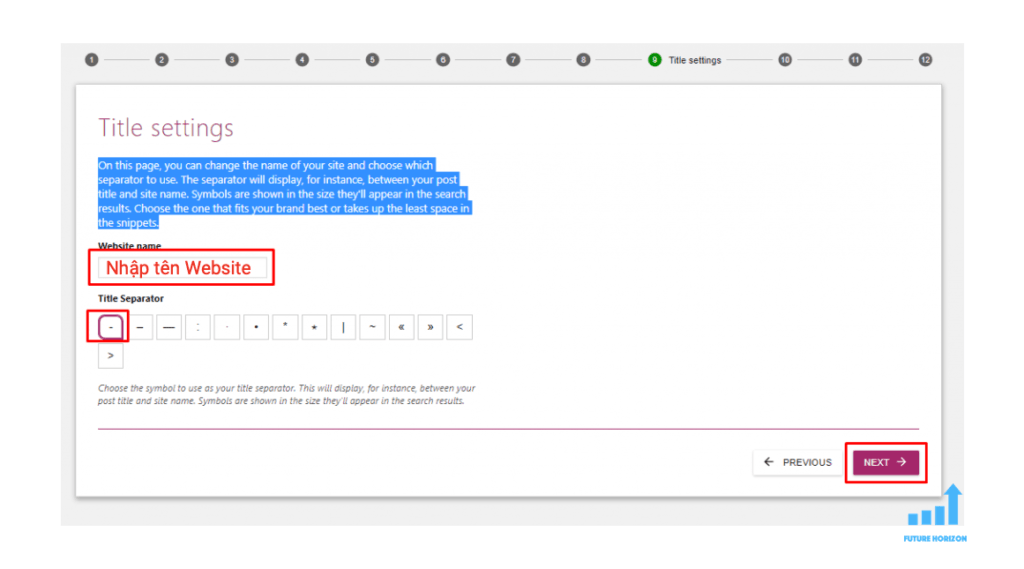 Bước 9: Thay đổi tên website và dấu phân cách